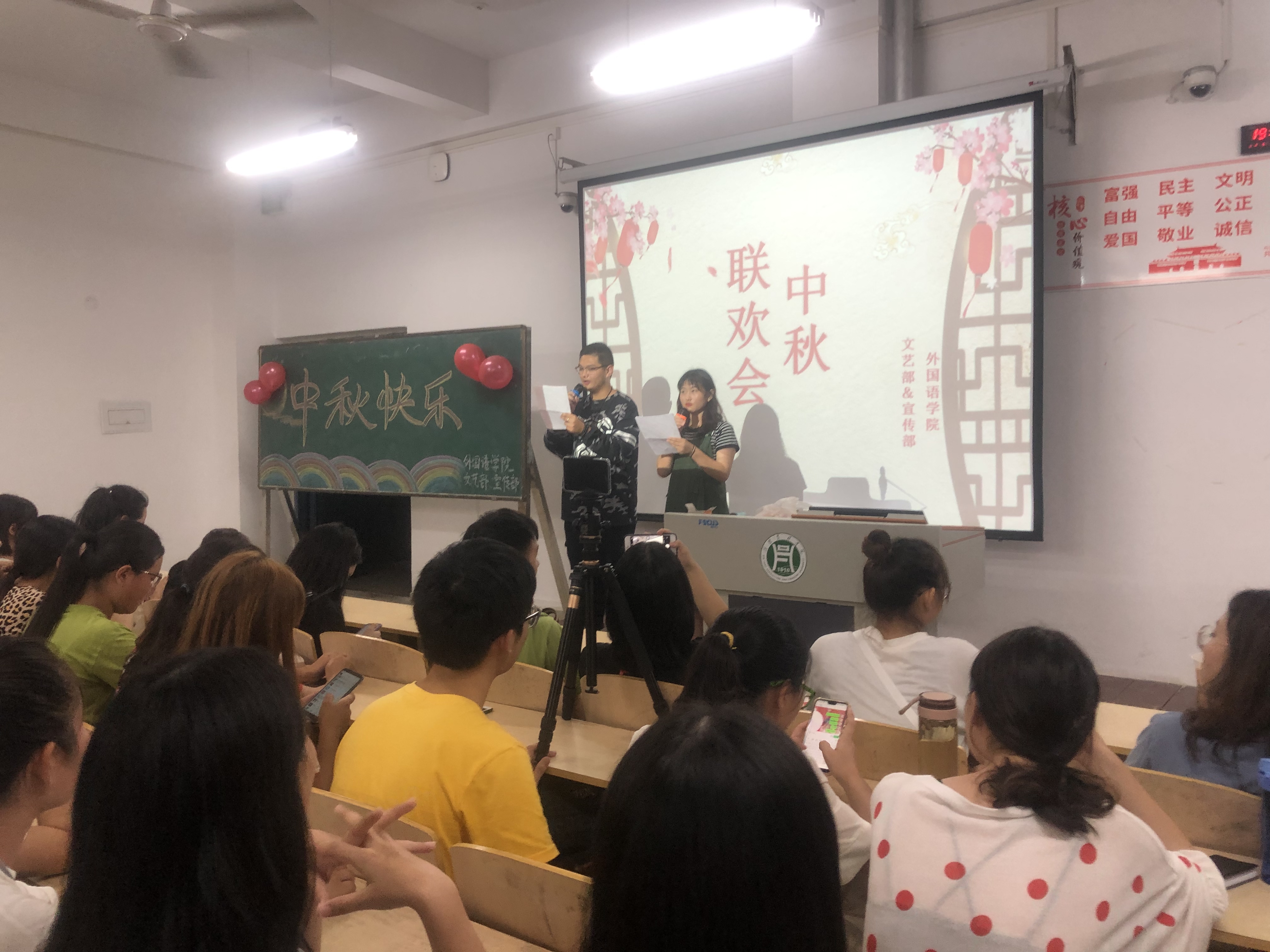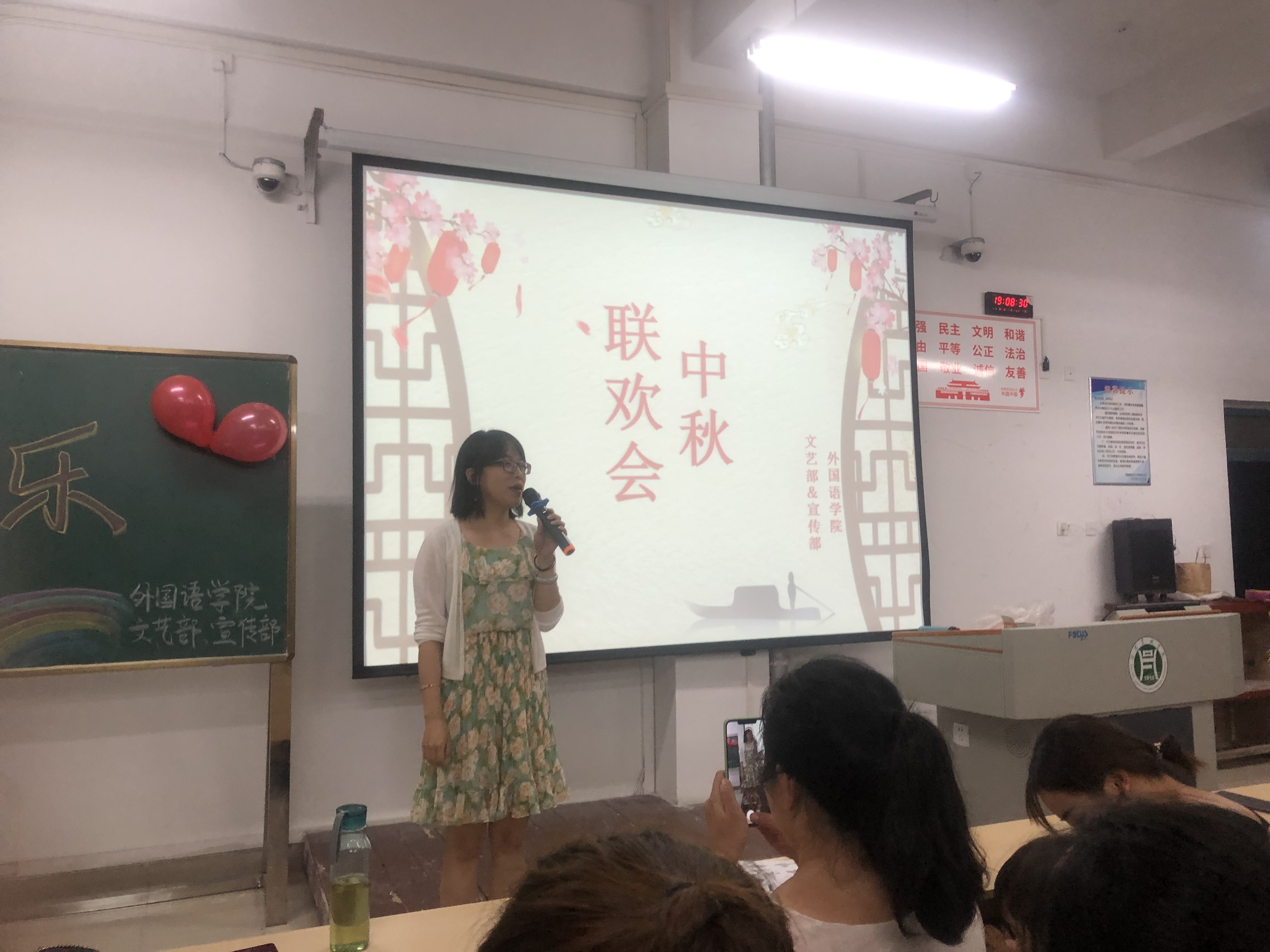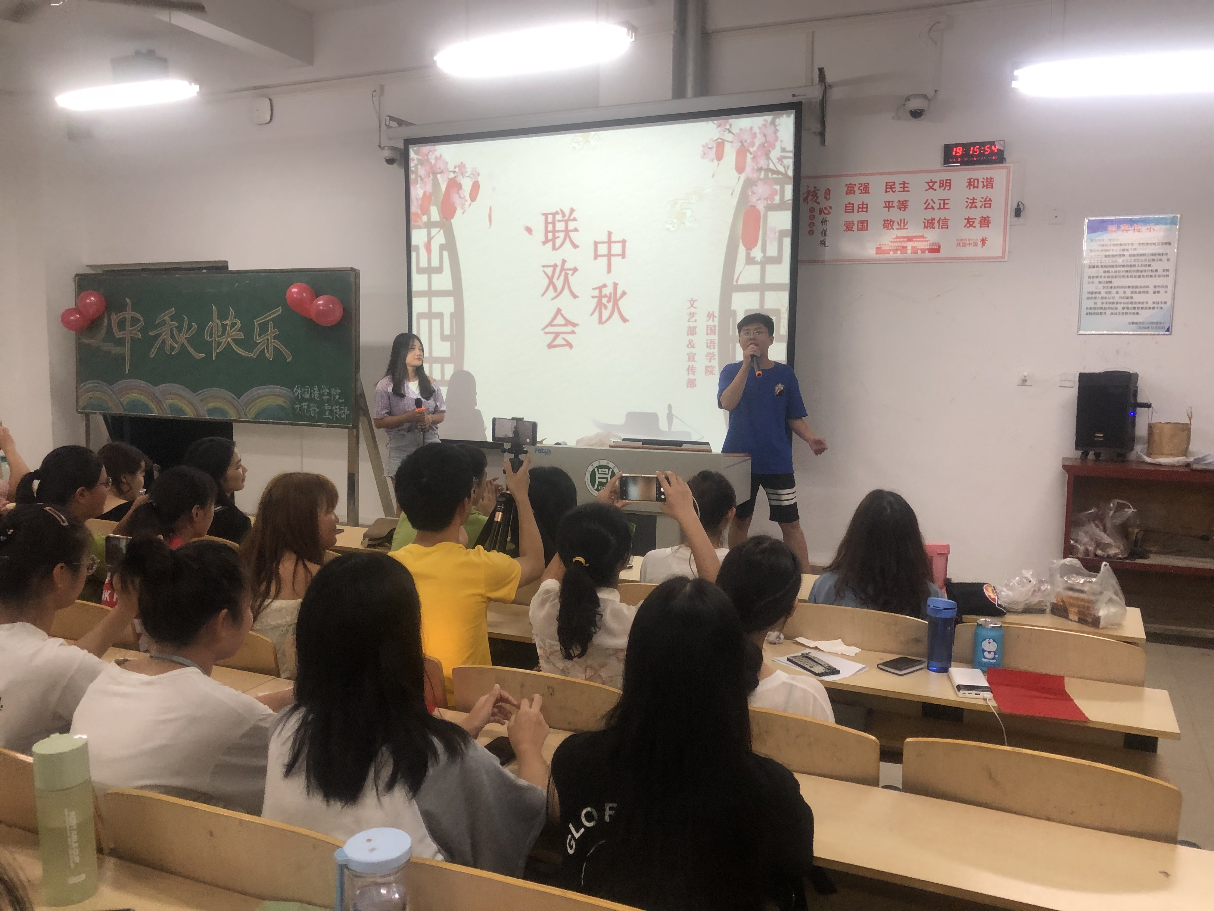 为欢庆佳节,帮助19级新生更快融入校园生活,同时使广大师生更多地了解中华民族传统节日的文化内涵,91319:00,外国语学院于二教306举办了中秋联欢会。我院19级新生辅导员宋昕、高宇、学生干部代表及19级新生参加了本次联欢会。