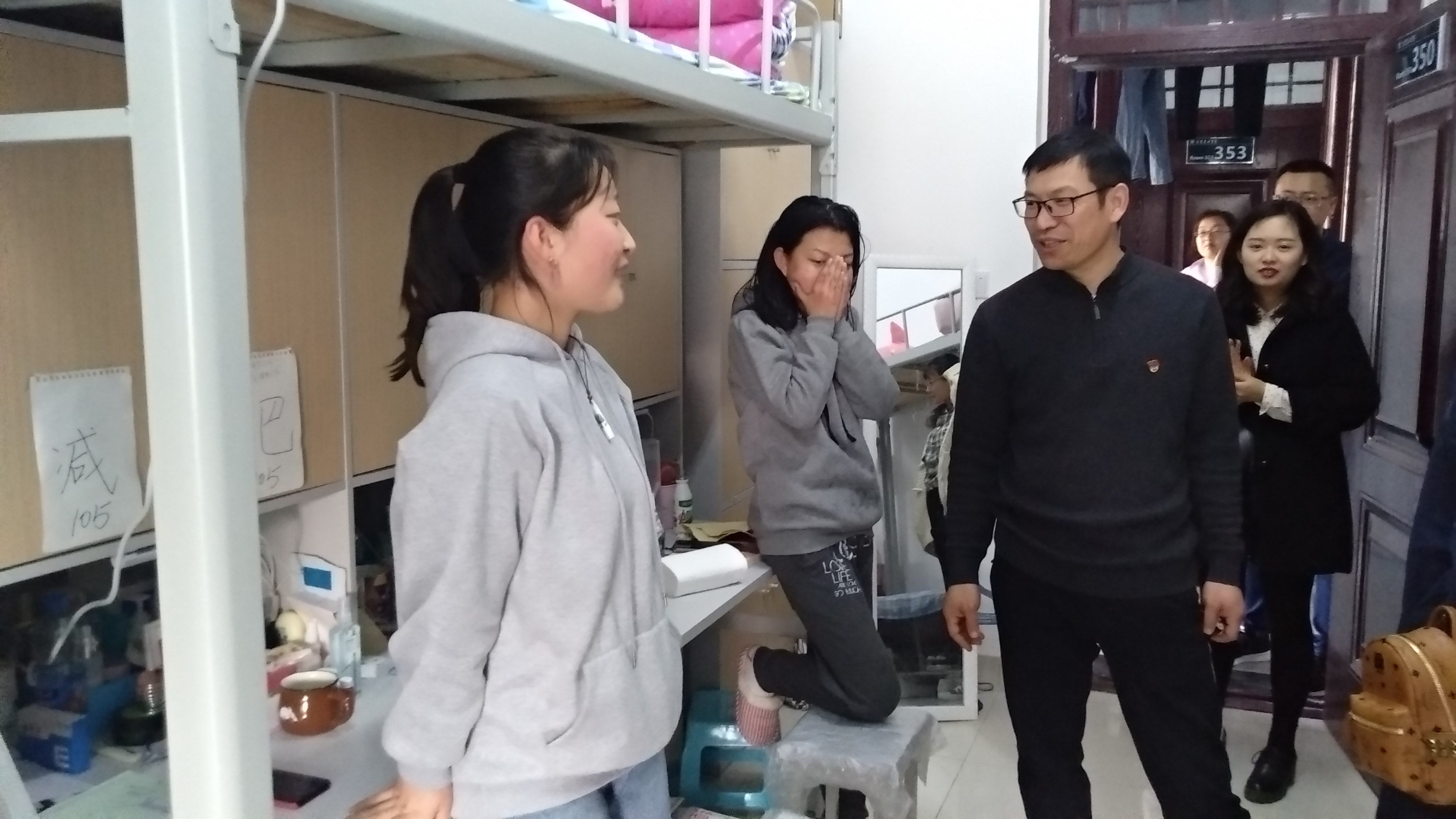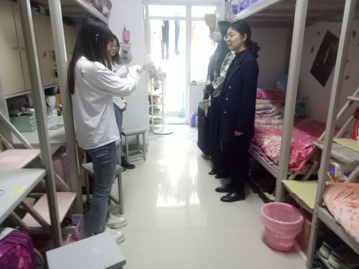 本次检查活动以“冬春换季安全”和“宿舍日常卫生”为主要内容。检查过程中,老师们对每个宿舍有无大功率用电器进行了详细的检查,并说明了违规用电的不良影响,其中卫生和被铺问题还存在少数不规范现象,大多数宿舍保持较好。最后,吴宏书记叮嘱学生要多开窗通风,保持室内空气清新,换季时期要多加强室外锻炼,为接下来的学习和生活打下基础。