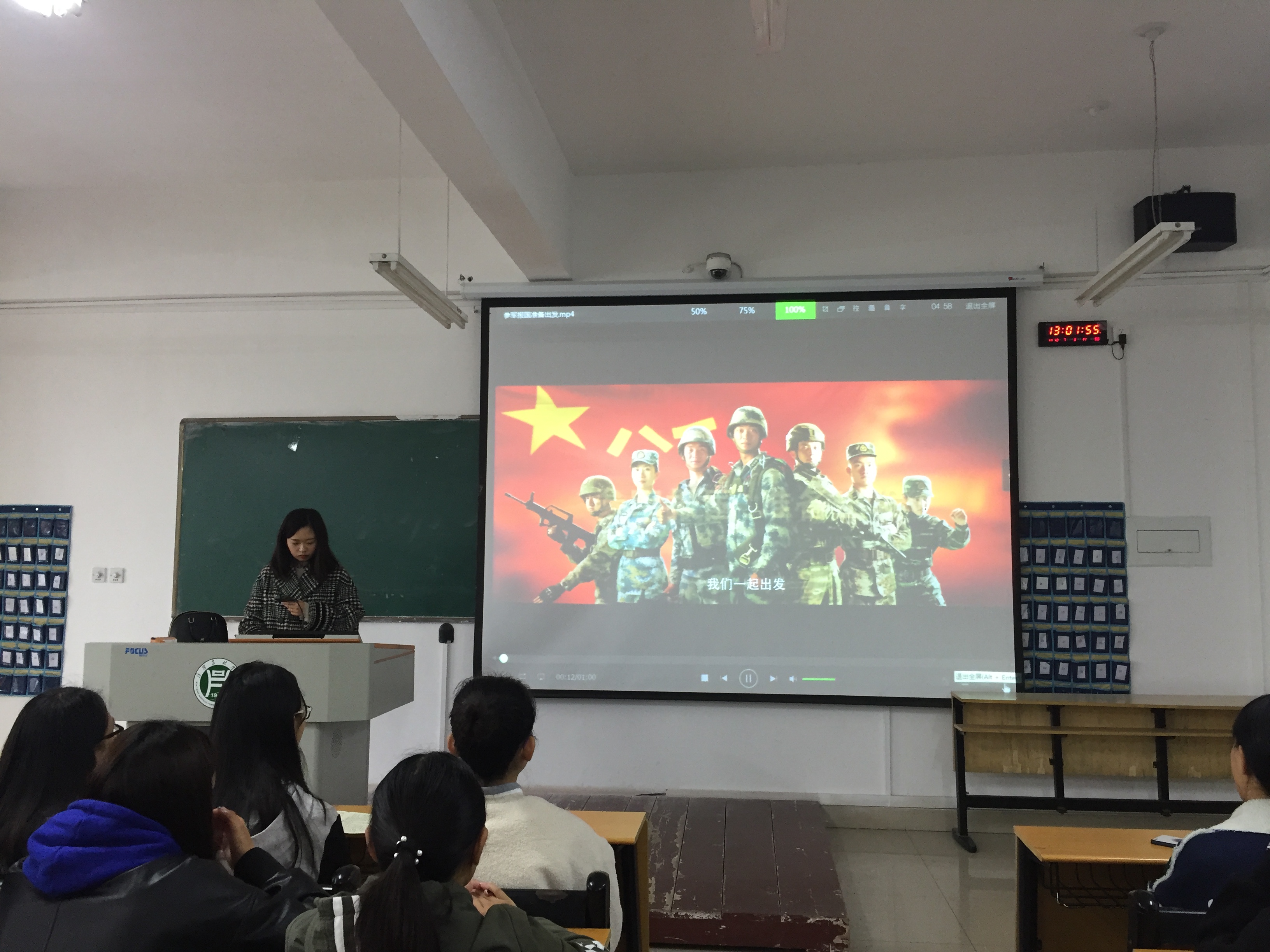 为了积极推崇“崇军尚武、爱我中华”的理念,营造全院关注国防、支持国防、热爱国防的浓厚氛围。2018年11月14日,外国语学院在二教101举行了国防教育报告会。会议由我院武装专干朱俊梵老师主持,2017级全体学生参加了此次报告会。
