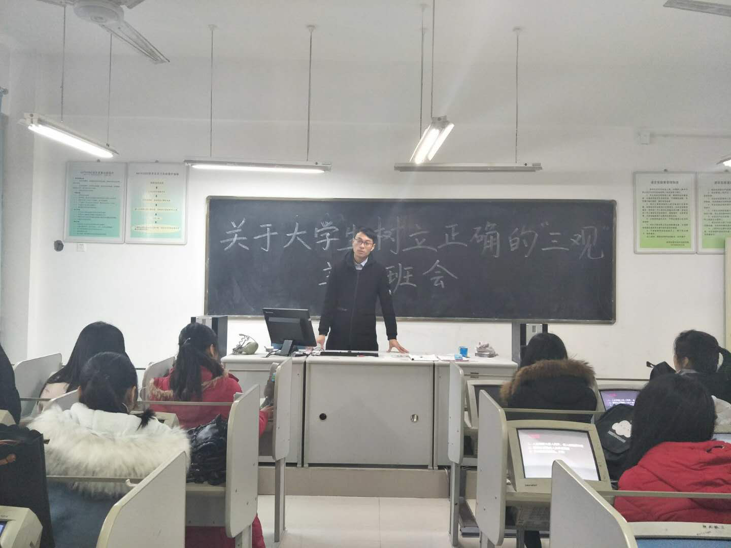 为了让大学生有一个健康的大学价值观念,20171215日,外国语学院16级商务英语一班与商务英语三班联合在2B404教室开展了一次关于大学生树立正确的“三观”主题班会。
