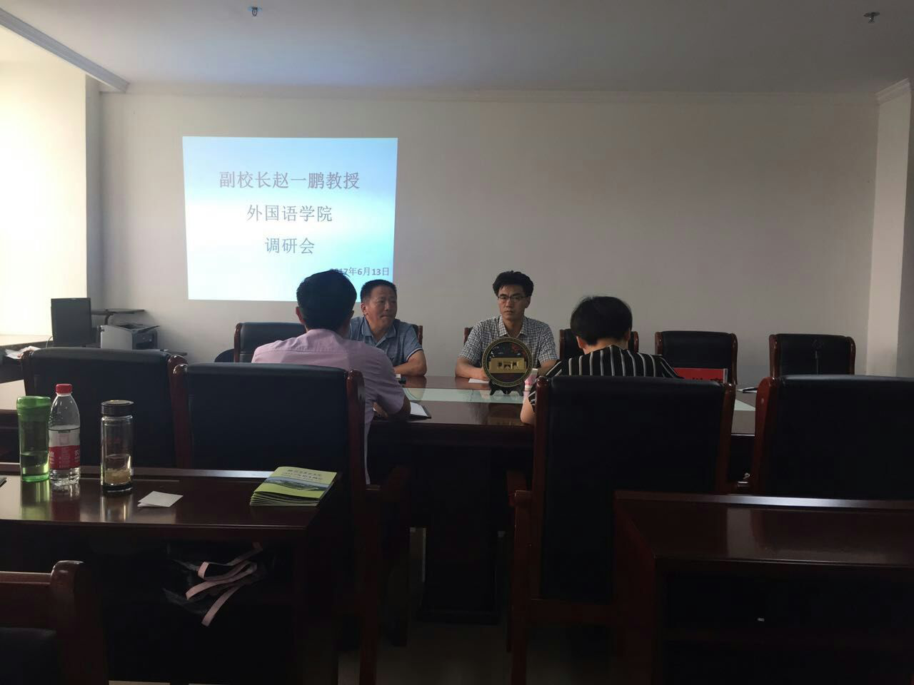 6月13日下午,副校长赵一鹏教授到外国语学院调研指导工作,听取师生意见和建议。外国语学院领导班子成员、教师代表参加了调研会,会议由外国语学院院长滕海主持。