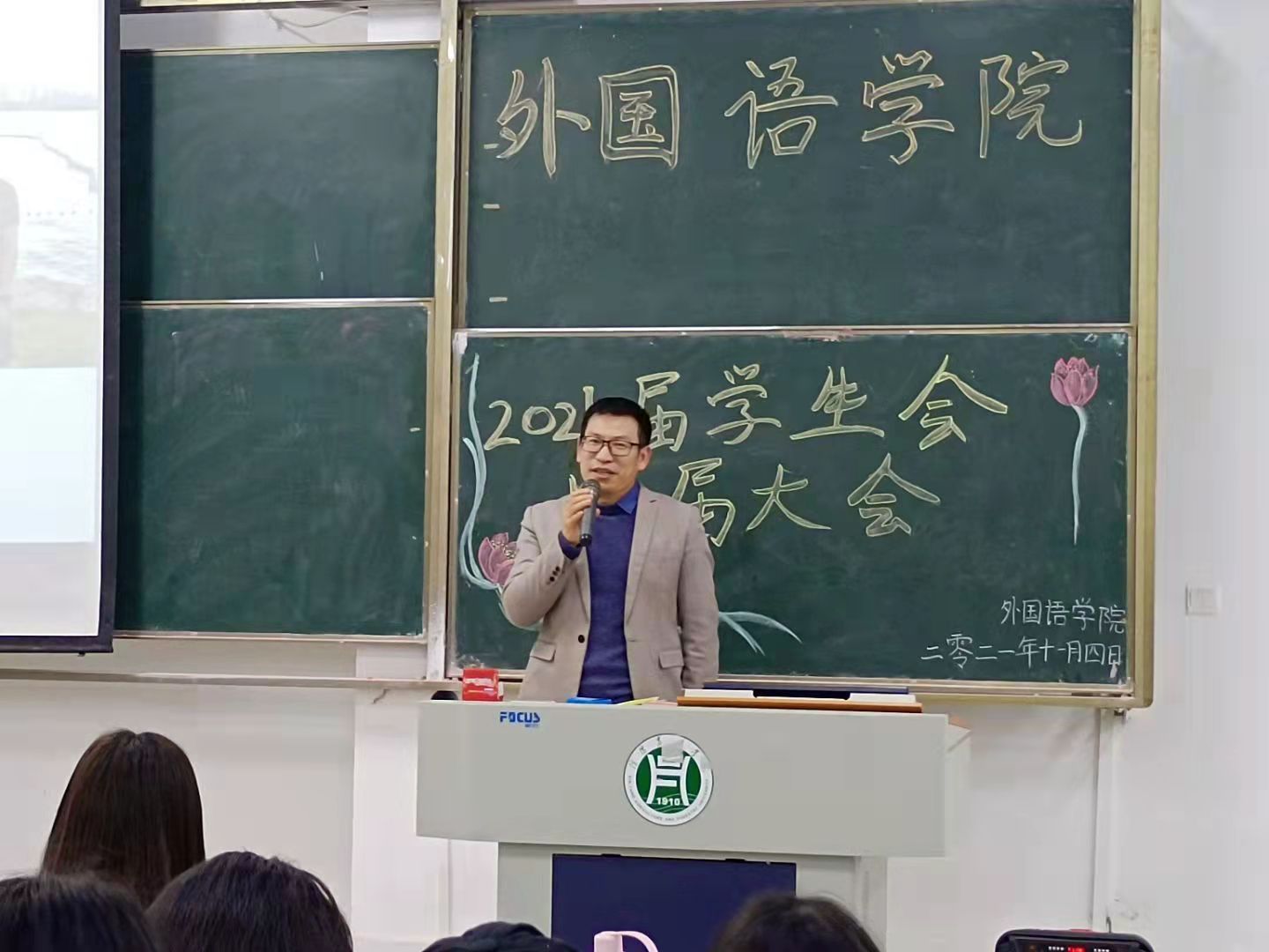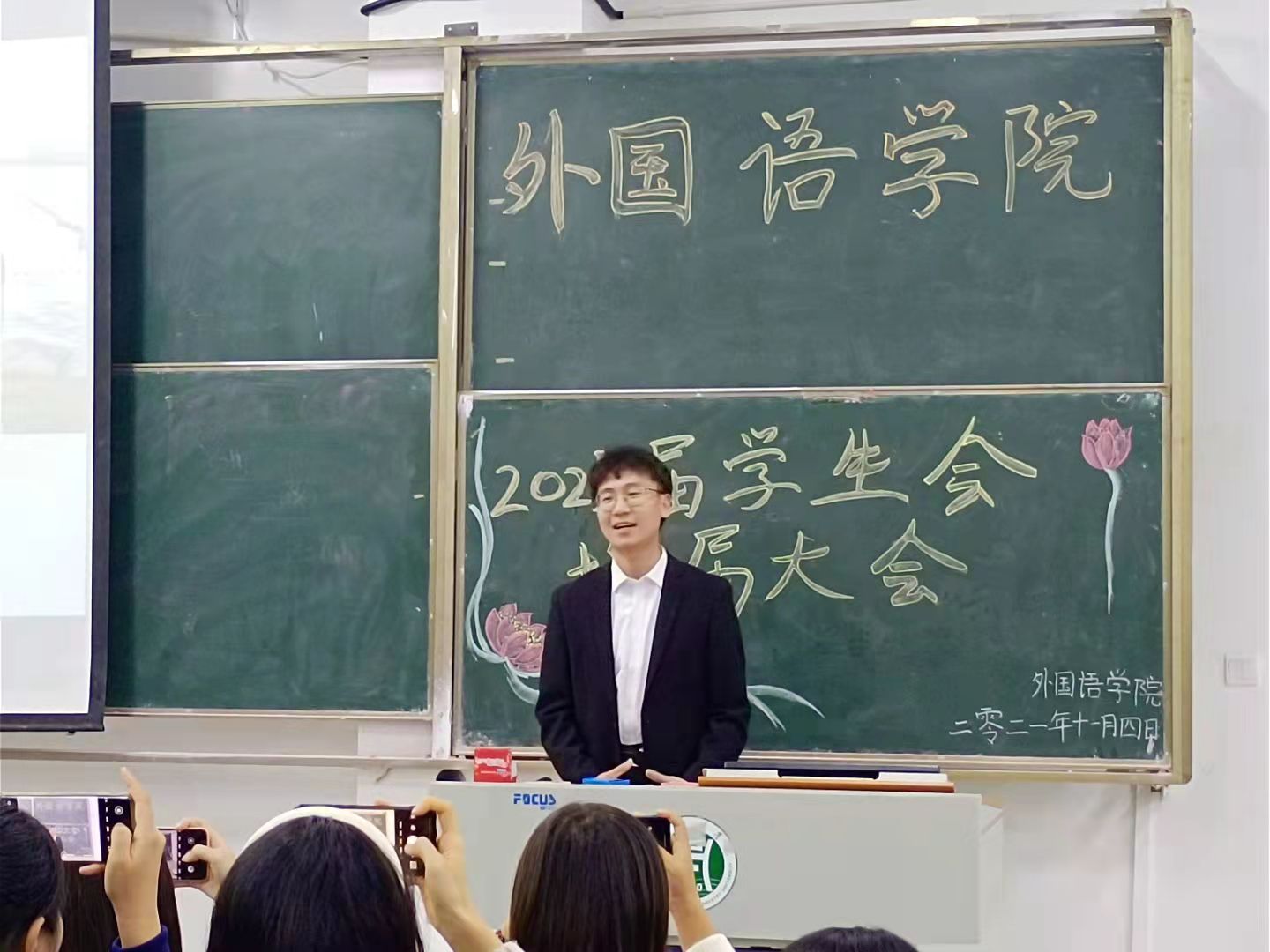 为更好的开展学生工作,进一步增强学生间的凝聚力,外国语学院于11月4日在一教E102开展了外国语学院学生会换届选举暨表彰大会。外国语学院党总支副书记吴宏,19、20级辅导员高宇、关迎雪,学生会成员及21级学生代表参加了本次会议。