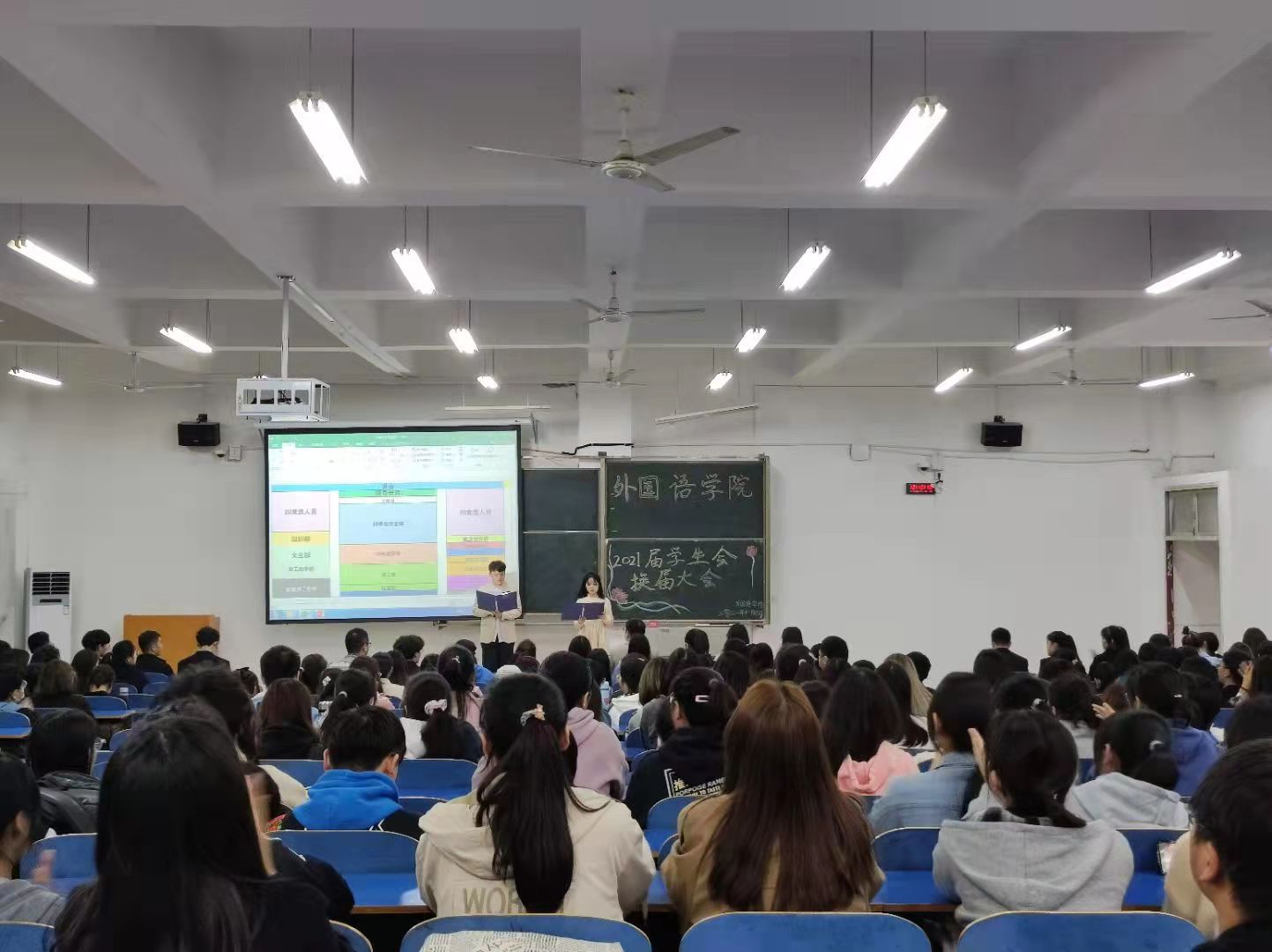 本次换届大会的成功举办,为我院学生组织注入了新鲜血液。相信新一届学生会将以“团结,求实,进取,创新”为宗旨,为外院的发展竭尽全力!
