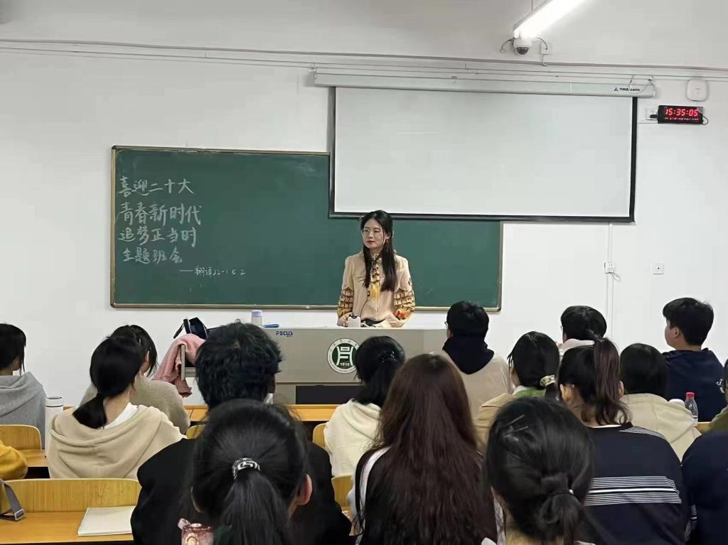为迎接中国共产党第二十次全国代表大会胜利召开,深入学习宣传贯彻习近平新时代中国特色社会主义思想,10月11-14日,外国语学院各班级开展“喜迎二十大 青春新时代 追梦正当时”主题班会,班会由各班辅导员老师主持召开。