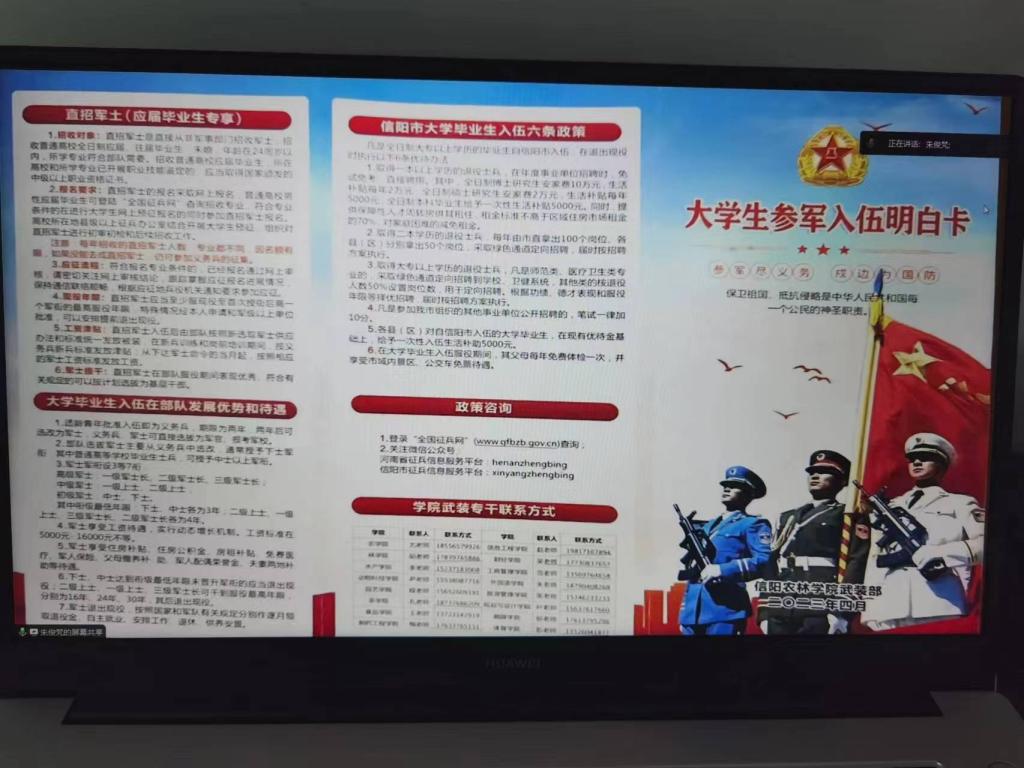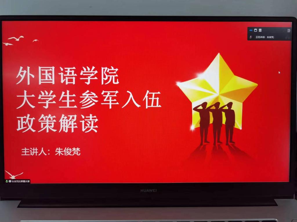 202367日下午外国语学院在线上召开2023届毕业生征兵入伍宣讲会,学院2023届毕业生参会