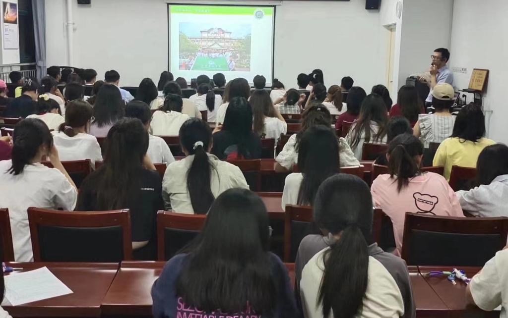 2023年9月19日晚,外国语学院在文学艺术楼402开展了以《看<大国三农>,“麦”向未来》为主题的新生入学主题教育报告,报告由学院党总支副书记吴宏主讲,学院2023级新生参加。