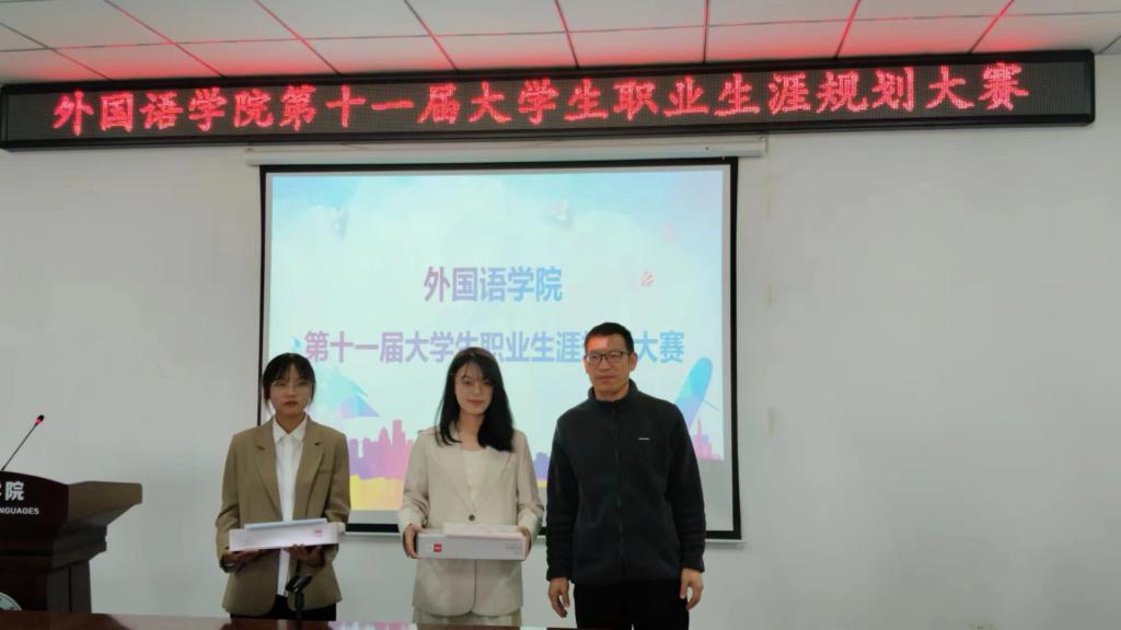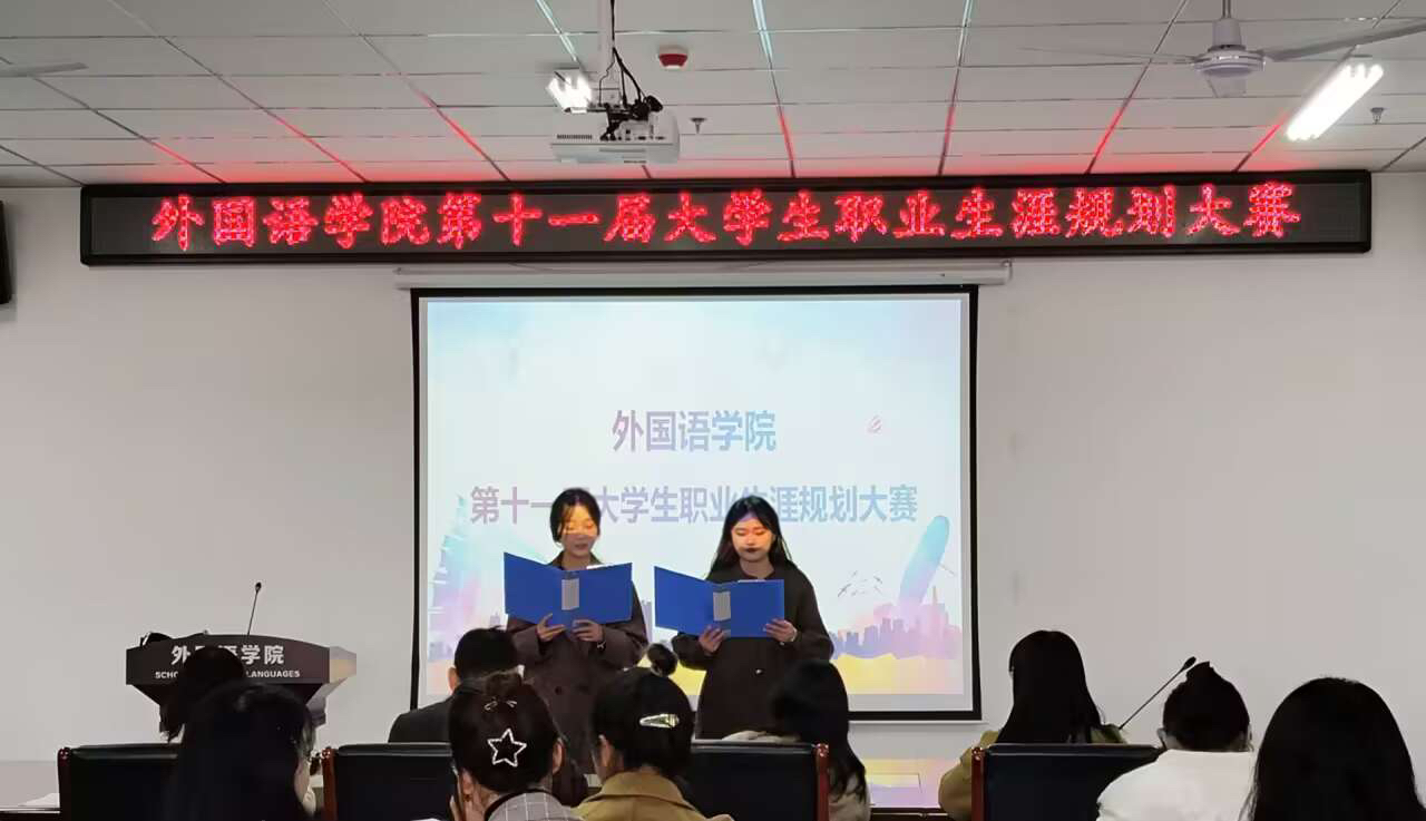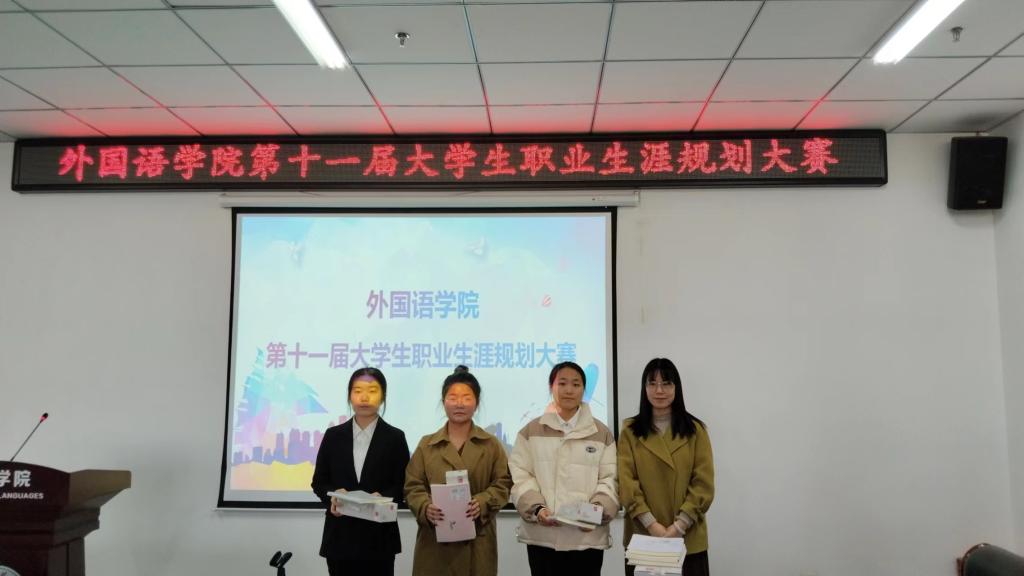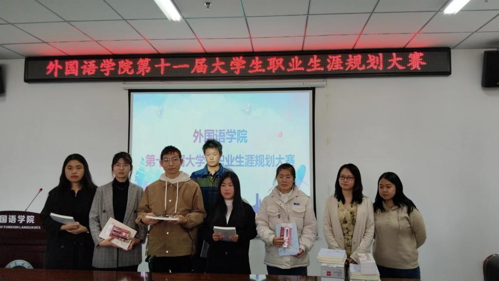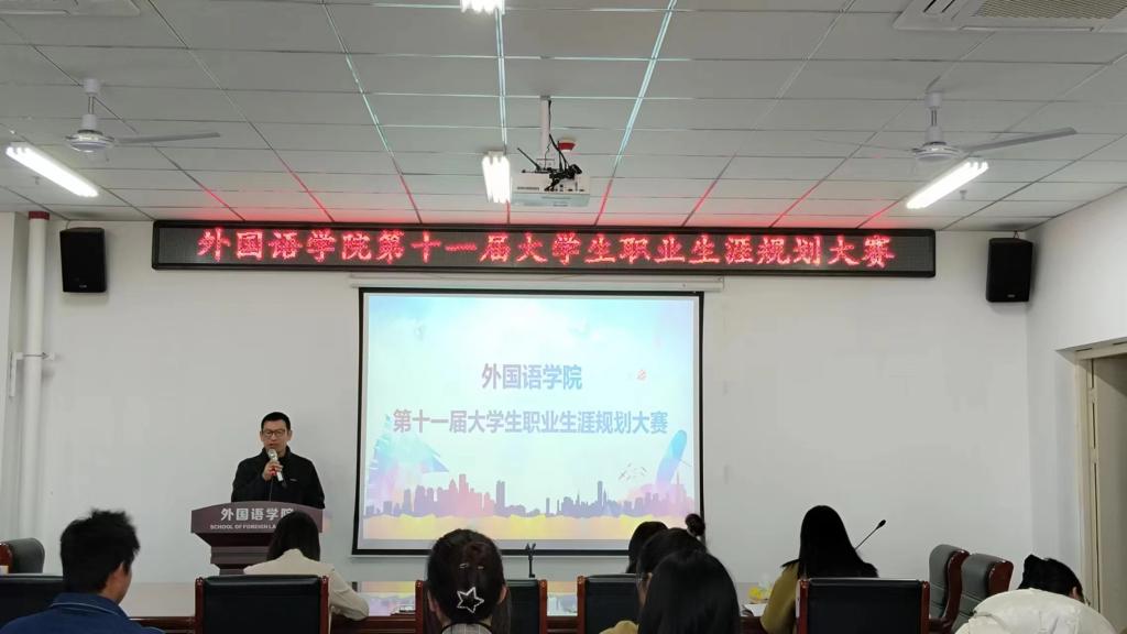 为帮助我院学生明确职业方向,树立正确的职业观念,提高综合素质和就业创业能力,外国语学院于11月24日中午在文学艺术楼402举办第十一届大学生职业规划大赛,外国语学院党总支副书记吴宏、就业创业专员关迎雪、优秀辅导员代表张淑娴、高歌担任此次大赛评委,21、22、23级部分同学参加了此次比赛。