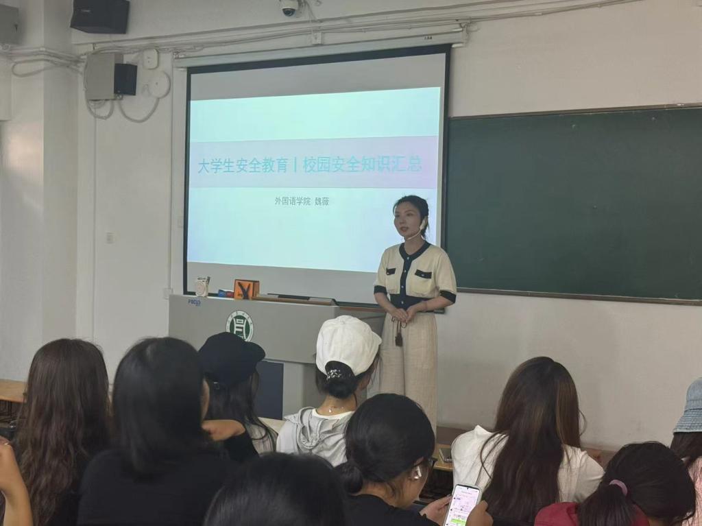 “安全是一个大学生完成学业的重要保证,是每位大学生健康成长的基本条件”。为了帮助大一新生了解更多安全知识,提高安全意识,2024年9月26日,外国语学院党总支副书记魏薇分专业开展了2024级大学生安全教育。