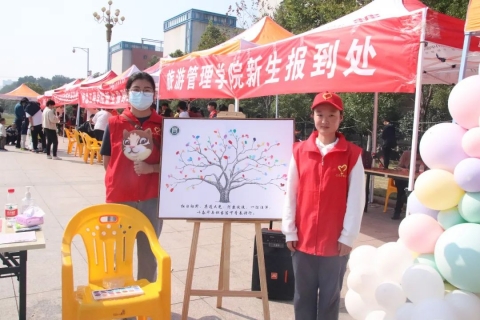 踏入外国语学院迎新报到点,一道由七彩气球勾勒而成的理想之门映入眼帘,期望"小耳朵"们能够在这里,扬帆开启属于自己的梦想之旅。