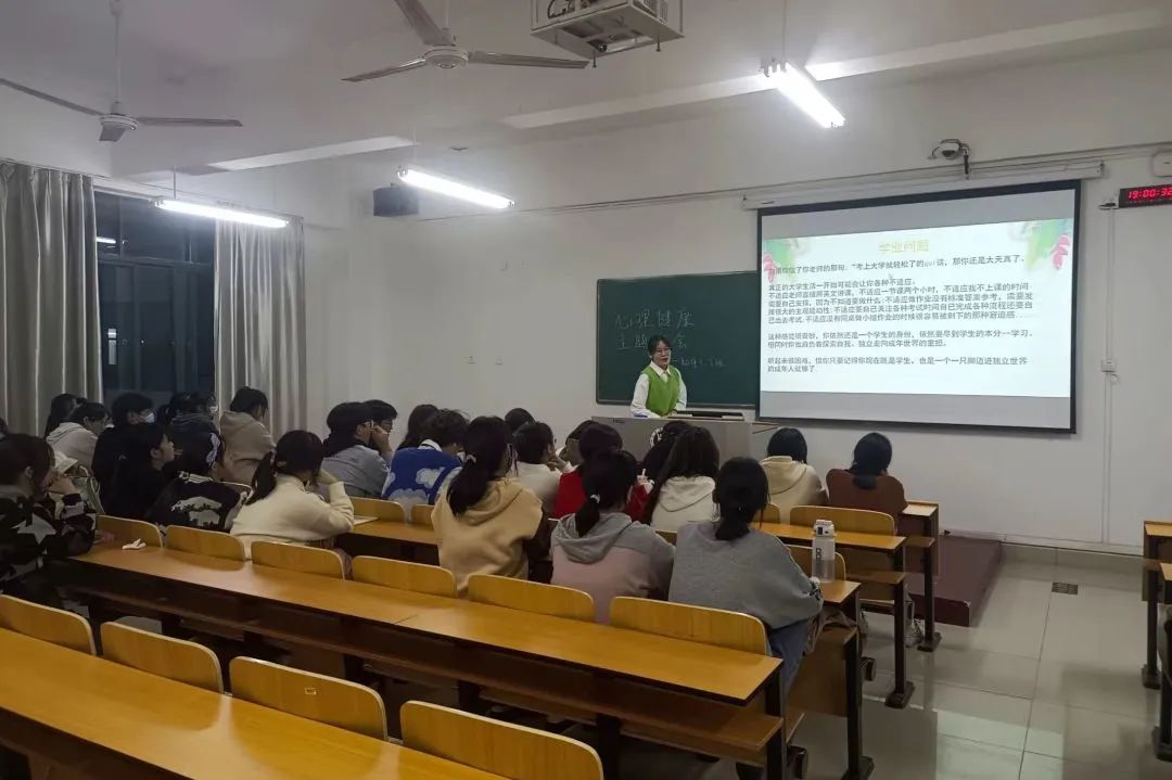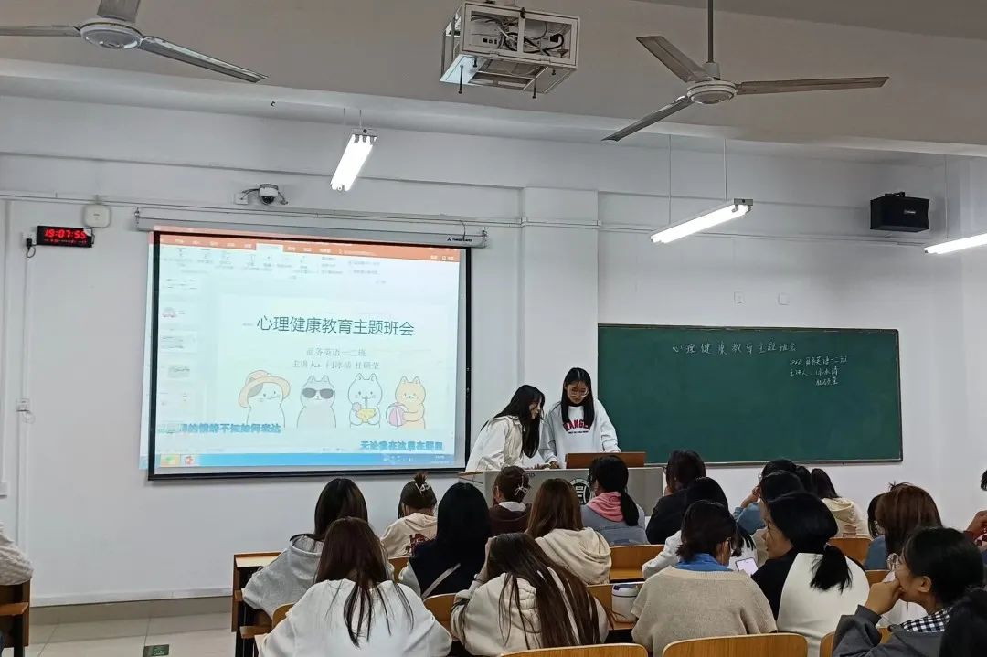 为进一步加强大学生心理健康教育,促进心理健康知识的宣传和普及,10月21日,外国语学院在二教开展了心理健康主题班会,22级全体学生参加。