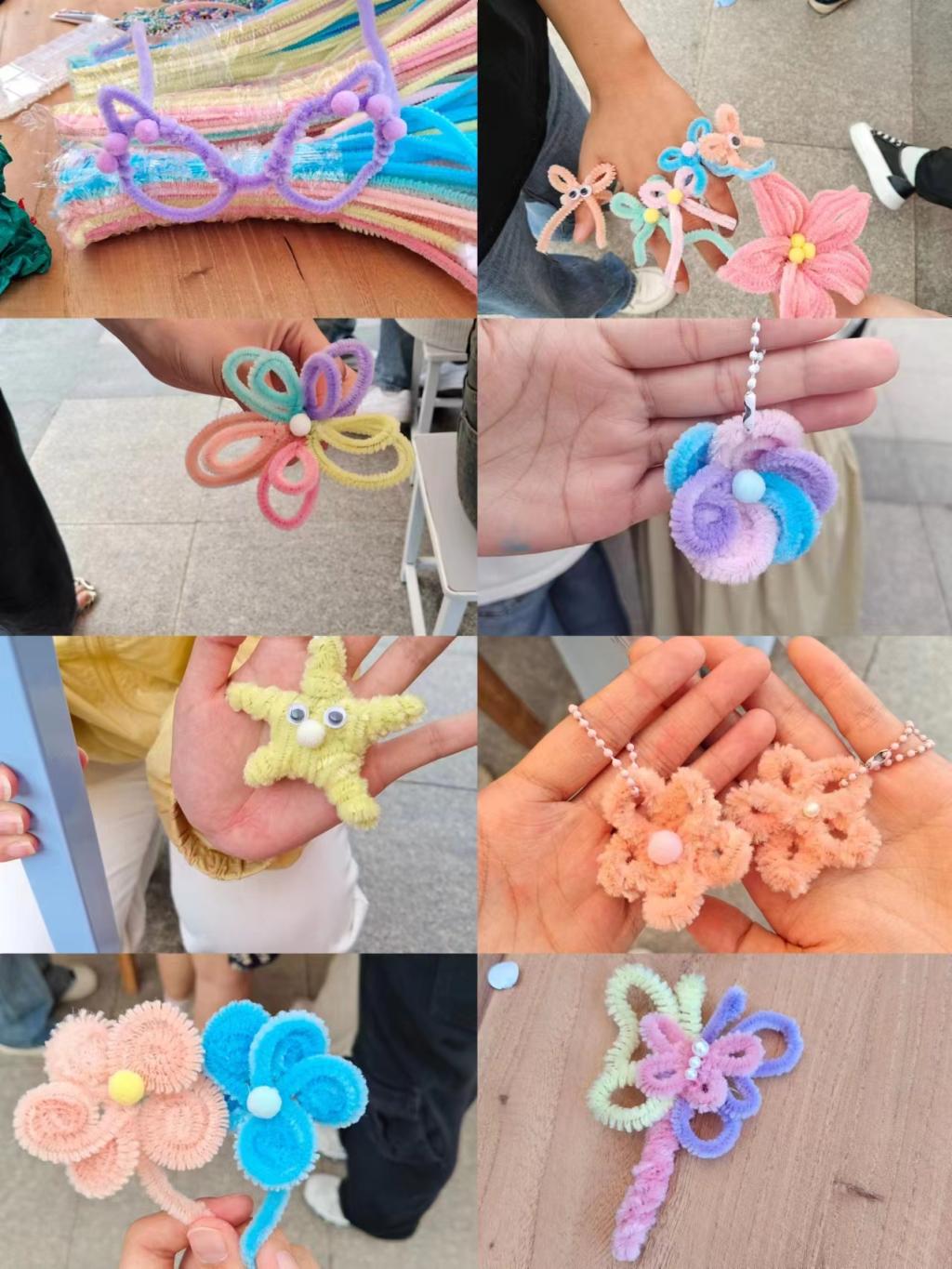 本次“扭扭解压坊,释放压力,编织心灵”心理嘉年华活动是利用扭扭棒做为手工材料,扭扭棒的奇特之处在于可以随意进行扭曲,扭曲完成之后会保持持续的造型而不会出现外形上的还原。一根根扭扭棒经过扭一扭,弯一弯,拉直、铺平就变成了一个个美丽漂亮的发箍、戒指、手环、眼镜等作品。本次活动吸引了全校众多同学积极参与,小小的作品,有着满满的成就感,活动最后大家都自豪的展示自己的创意作品。