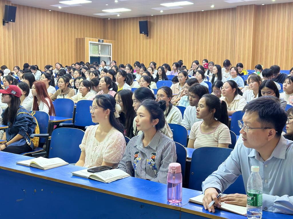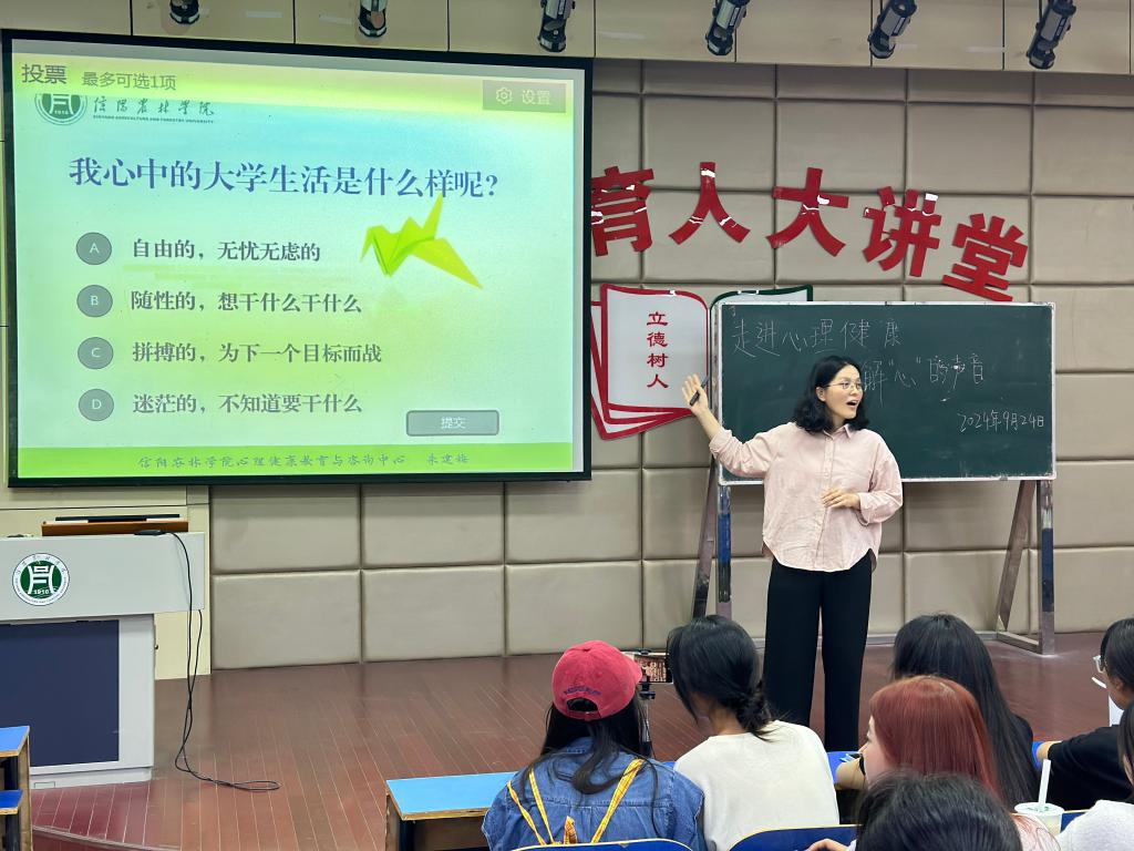 为进一步普及心理健康知识,帮助2024级新生更好地适应大学生活,9月24日下午,外国语学院在一教E101举办了以“走进心理健康——了解‘心’的声音”为主题的心理健康讲座。本次讲座由beat365在线平台官网心理健康教育与咨询中心主任朱建梅主讲,外国语学院党总支副书记魏薇、心理专员关迎雪、新生辅导员王婉秋、向刚老师,2024级全体新生参加了本次讲座。