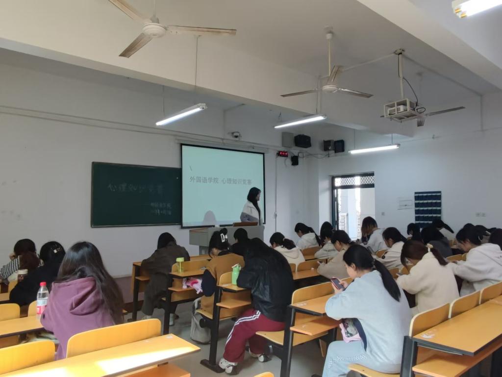为了解同学们心理健康状态,丰富心理健康知识。外国语学院于10月25日中午在二教217B举办心理健康知识竞赛,23、24级班级心理委员及心理健康部门成员参与竞赛。