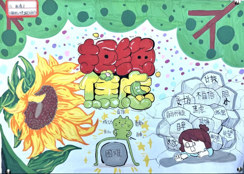 全校200余名学生积极参与,共收到作品176幅,绘画与创意表达中释放活力、凝聚温情。外国语学院党委副书记魏薇、校心理健康教育与咨询中心教师袁悦及各学院心理专员担任评委,在实验楼3B205对各学院推荐作品进行了集中评审。最终,共评选出手绘作品一等奖5幅、二等奖10幅、三等奖18幅;电子作品一等奖3幅、二等奖6幅、三等奖12。同学们紧扣心光引路,青春启航的心理健康主题,同学们将创意融入笔端:画面抓人、标题走心,既讲自我探索,也做科普宣传,让心理健康四个字既看得见又摸得着。