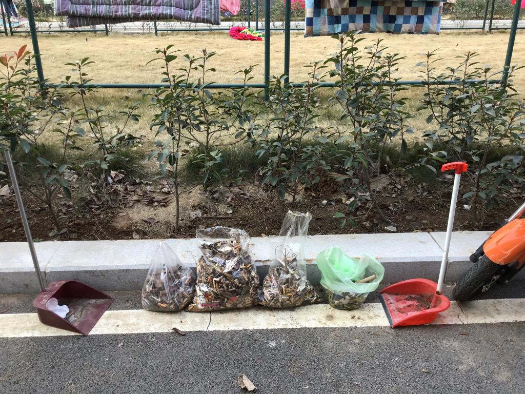 同学们在班长李晓月的带领下,对11至14号宿舍楼进行较为全面的清扫。尤其是对宿舍楼周围的生活垃圾进行了重点清洁。同学们在有序地领取清扫使用的工具后,便积极投入到清扫的工作中。他们细心的对每一寸草地进行检查;耐心地拾起每一个细小的烟头,每一片窄小的纸屑。经过两小时的努力,同学们已经将所拾区域的所有垃圾全部清理干净。