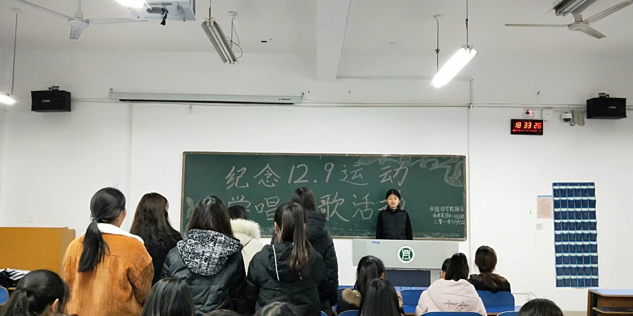 1935年的12月9日,北平六七千名大中学生为了反对日本帝国主义的侵略,反对内战,发动了著名的“12·9” 爱国学生运动。知恩不忘党,红歌颂党恩。为纪念12.9爱国学生运动82周年,弘扬中华民族优良传统,外国语学院举办了以“纪念12.9活动,学唱红歌”为主题的纪念活动。