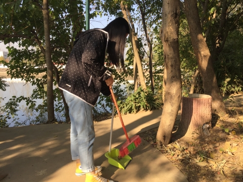 到达指定卫生区后,一部分同学用扫帚堆起沉积的落叶,或是用手捡起路边的垃圾。另一部分同学对宿舍楼附近的小广告逐一进行了清理,并且把共享单车摆放到指定位置。经过清扫,林间小道、草坪深处塑料袋、瓜皮纸屑的踪影均已不见,小广告也被清理得干干净净。同学们用自己的实际行动为学校增添了一份清新,一抹明亮。