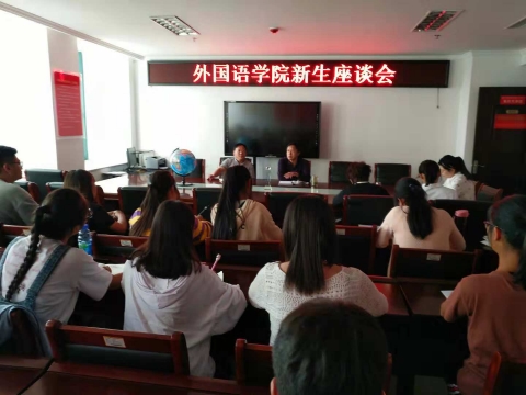 9月28日下午,外国语学院在行政楼803召开了新生座谈会。会议由新生辅导员徐文君主持,我院院长滕海、党总支书记张志强、办公室主任郗杨、教学秘书蔡鸣、商务英语教研室主任段云虹与新生代表参会。
