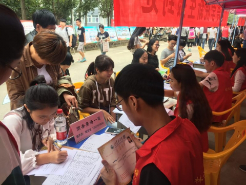 金秋九月,丹桂飘香。在这硕果满满的季节里,外国语学院2017年迎新工作如期展开。学院领导对于本次迎新工作高度重视,提早准备,力求真正做到学生方便、家长放心的一站式服务。迎新期间,高年级同学24小时轮流值班接待,志愿者全天候服务,让新生及家长都能感受到外院大家庭的热情和温暖。