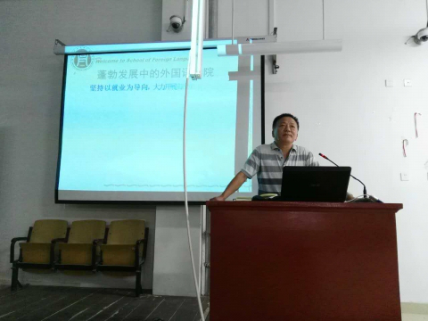 9月26日下午3点,外国语学院在二教406召开新生入学教育之院情介绍,院班子成员、各教研室主任、16级辅导员及16级全体新生参加会议。