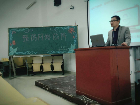 为进一步强化学生安全防护意识,增强学生自我保护能力,营造安全、文明、和谐、积极向上的校园生活环境,以学生处开展的“安全教育活动月”活动为契机,3月27日晚,外国语学院在教二楼406教室开展了“远离网络陷阱,提高自身安全防范能力”为主题的安全教育活动。活动由学院学工组副组长、团总支书记吴宏老师主持,辅导员闫冰清老师及外国语学院全体学生参加了此次活动。