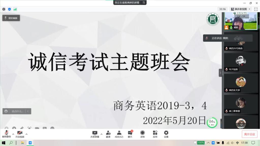 为将诚信教育与学风班风建设相结合,根据疫情防控要求和实际情况,我院辅导员老师于5月17-20日期间,开展了线上或线下会议,强调严肃纪律,共建诚信考风,确保每一位学生能够在期末考试中严格自律,诚信考试,从容应对这一场对于自身知识素质的考核和对自身品德修养的检验。