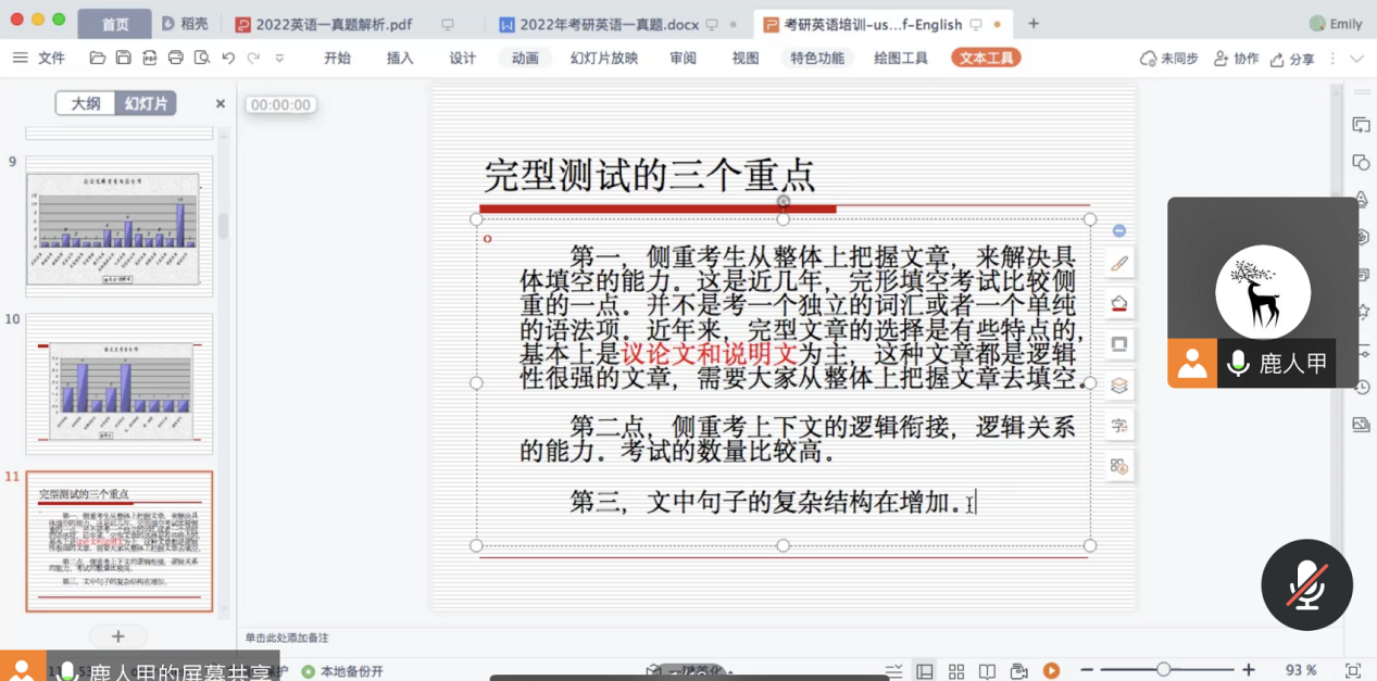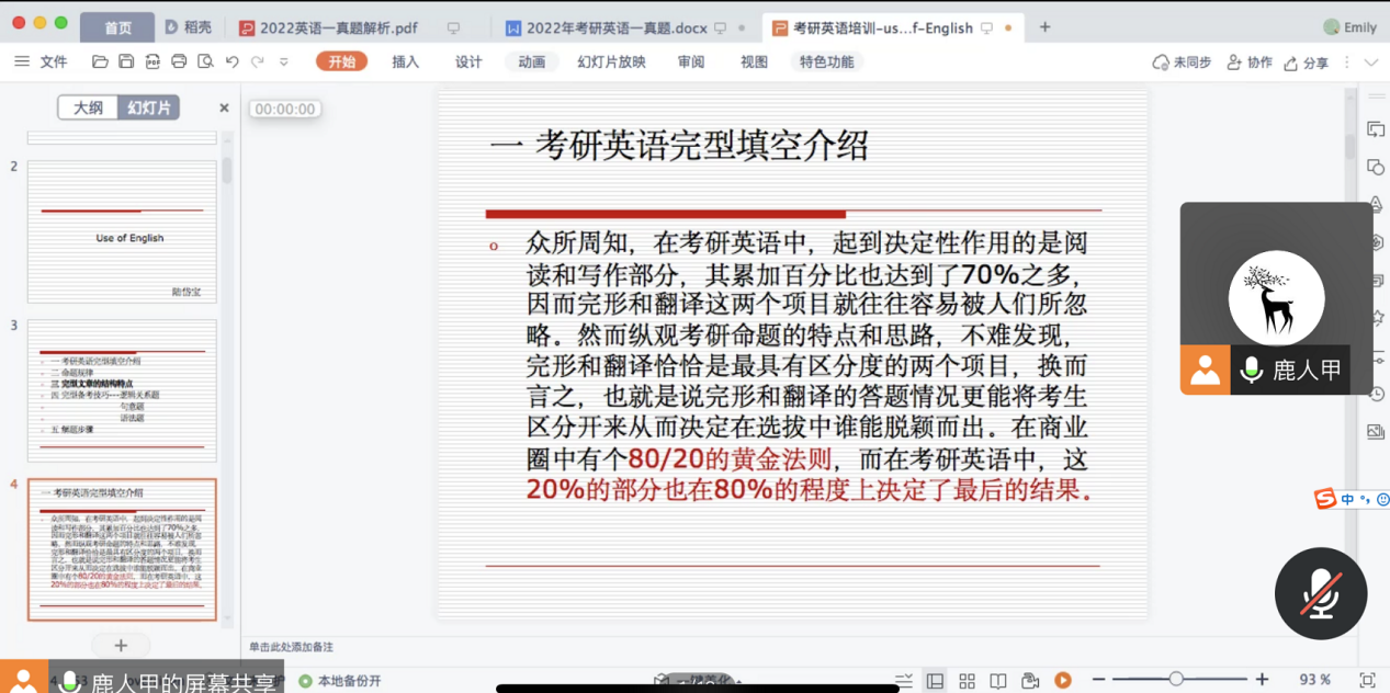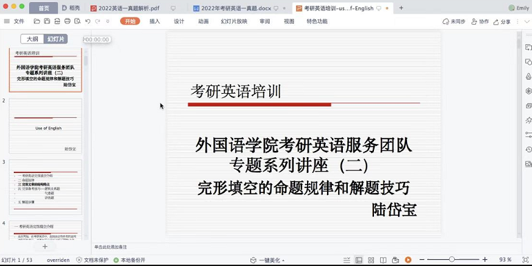 1114日晚七点,外国语学院考研服务团队陆岱宝老师通过腾讯会议为全校非英语专业学生进行了第二期专题系列讲座,讲座以考研英语中“完形填空的命题规律和解题技巧”为主题展开。
