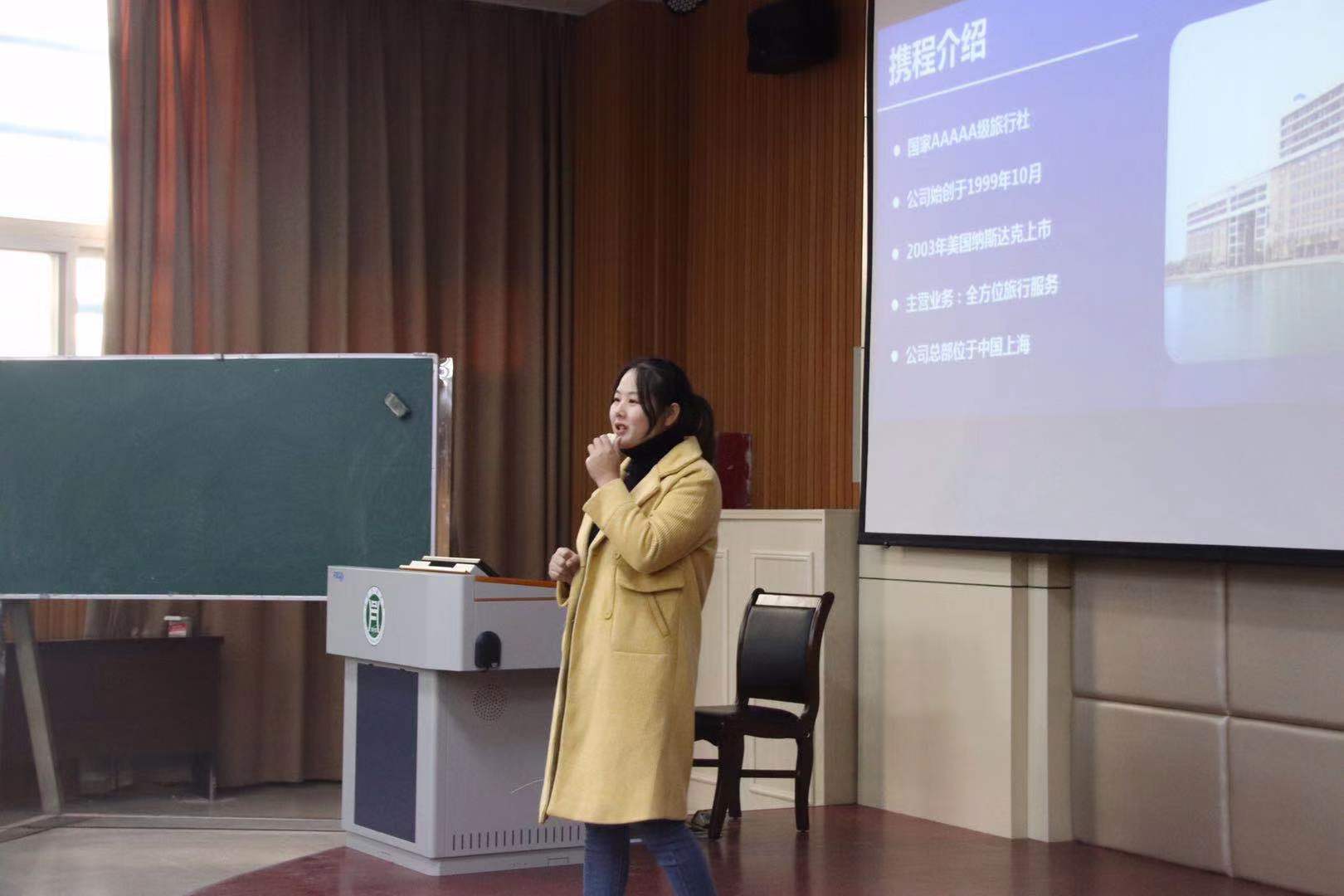 为进一步提升我院毕业生就业质量,切实做好就业工作,拓宽毕业生就业渠道,加强校企间的合作交流。外国语学院特邀香港唐宫饮食集团、北京钰玉世家企业管理有限公司(上海分公司)、携程旅行网等多家企业组织开展2019年冬季企业招聘宣讲会。我院副院长冯昱、就业专员闫达、2020届毕业生辅导员范琼琼、朱俊梵、张珊姗、黄琳等参与招聘宣讲工作。