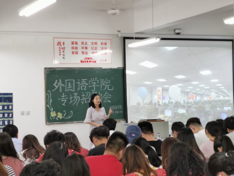 5月23日上午,外国语学院在二教101教室举行专场招聘宣讲会,邀请携程旅行网华中服务联络中心派工作人员进行招聘宣讲,我院毕业生高度热情参与。