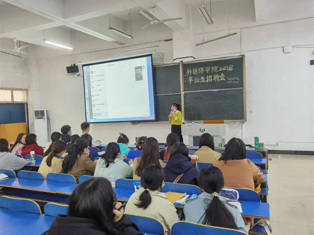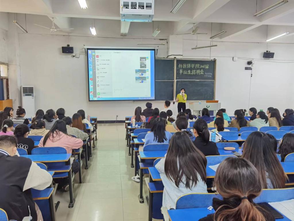 为了更好解决大学生毕业就业难的问题,缓解大学生毕业就业压力,10月11日下午13:30,外国语学院于一教E102携手携程旅行网举办2023届毕业生专场招聘宣讲会,外国语学院副院长冯昱、就业专员关迎雪、辅导员黄婷和2023届全体毕业生参加本次招聘会。