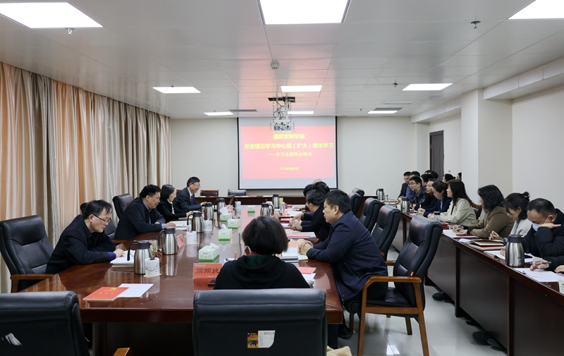 黄松指出,今年全国两会是在实现“十四五”规划目标任务关键之年召开的一次重要会议,习近平总书记在两会期间的重要讲话和李强总理的政府工作报告,为我们做好相关工作提供了重要指引。全校上下要深刻领会习近平总书记重要讲话精神和全国两会精神,扎实做好学习宣传贯彻工作,切实把思想和行动统一到党中央决策部署上来。就学习好全国两会精神,黄松提出三点要求。一是要深刻领悟“两个确立”明方向。实践证明,“两个确立”是我们做好一切工作的信心之本、战胜一切困难的胜利之源。要从我国发展取得的非凡成就和展现的光明前景中更加深刻地领悟“两个确立”的决定性意义,始终做到心无旁骛听从习近平总书记的指挥号令。二是要端正态度破除束缚迎挑战。要深刻领会习近平总书记关于教育强国建设的新部署,以立德树人为根本,以强农兴农为己任,深入实施“全面深化改革三年行动”“高质量发展三年行动”,以目标管理考核为牵引,找准工作突破点,形成重要增长点,高标准服务“两个更好”“两个确保”,以优异成绩向新中国成立75周年献礼。三是要创新驱动提升能力抓内涵。今年是实现“十四五”规划目标任务的关键一年,作为高等农林教育工作者,我们要锚定“深入实施科教兴国战略,强化高质量发展的基础支撑”和“坚持不懈抓好‘三农’工作,扎实推进乡村全面振兴”两项工作任务,对标岗位新标准和专业培养新方向,在三年行动计划中创新工作方法,真抓实干提升内涵建设,为本科审核评估高质量通过打好根基。