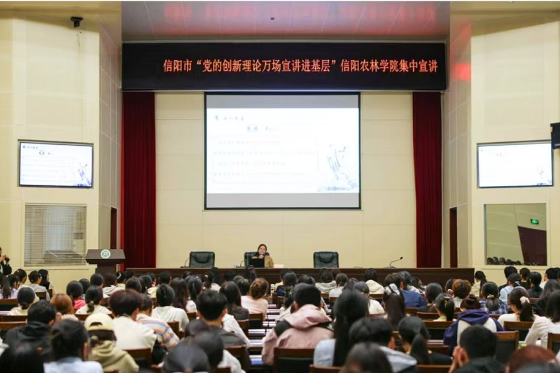 9月29日,中共信阳市委宣传部、市教体局组织市“党的创新理论万场宣讲”团队成员走进beat365在线平台官网开展宣讲活动。校党委宣传部相关同志、人文与传播学院教师及学生代表近300人参加。
