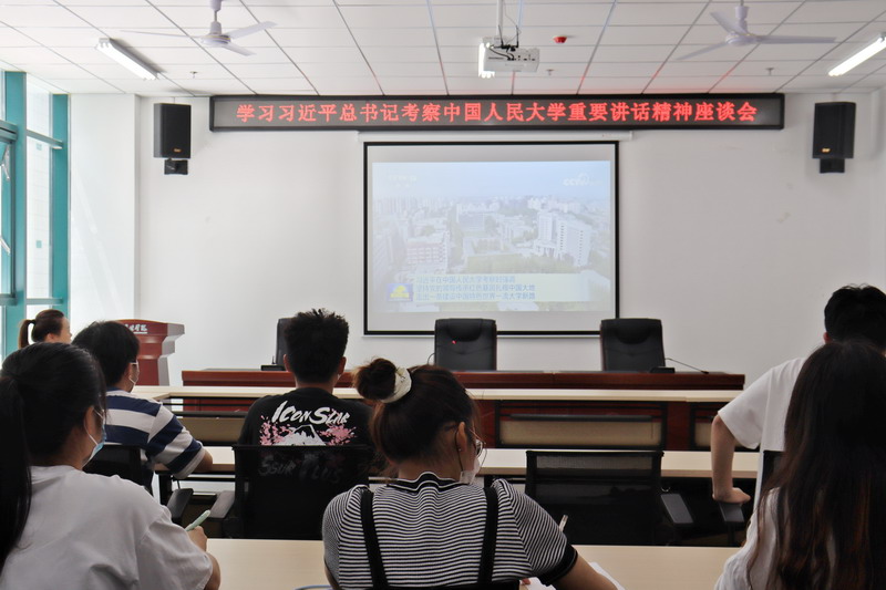 4月26日上午,党委副书记王庆兵主持召开学习习近平总书记考察中国人民大学重要讲话精神座谈会。党委宣传部、党委学工部、校团委、马克思主义学院、图书馆、校工会、二级学院党总支书记代表参加座谈会,集体观看了习近平总书记考察中国人民大学的新闻视频,大家结合自身工作分别谈了学习体会。