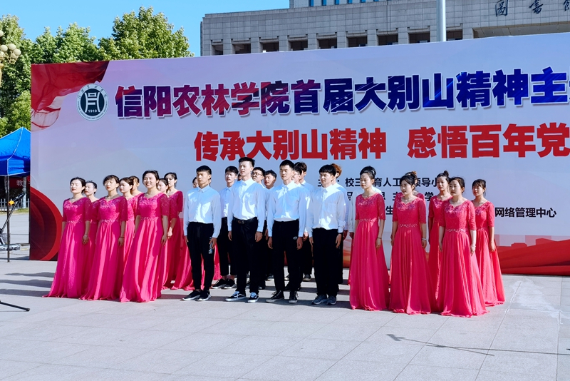 接着,学生代表声情并茂地讲述了“大别山母亲”周大娘舍子救红军的故事,感人至深,催人泪下。最后,全体师生集体合唱《没有共产党就没有新中国》。
