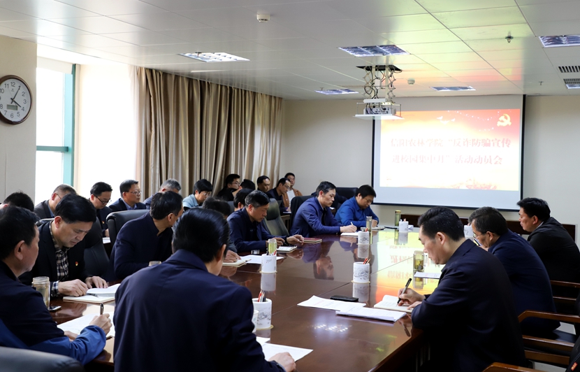 会上,保卫处处长李巨传达了信阳市打击治理电信网络新型违法犯罪工作市际联席会议精神和信反诈联席办〔2019〕1号《关于深入开展“反诈防骗宣传进校园集中月”活动的通知》文件精神,宣读了《beat365在线平台官网“反诈防骗宣传进校园集中月”活动实施方案》 。