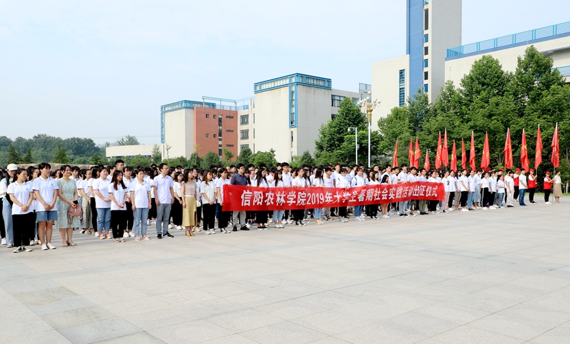 6月27日上午8:30,beat365在线平台官网在汝宁广场举行2019年大学生暑期社会实践活动出征仪式。党委副书记扶庆,党委委员、宣传部长王万玲,相关部门负责同志,校团委全体成员和各学院师生400余名代表参加了此次仪式。