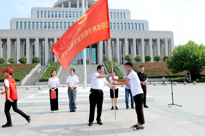 党委副书记扶庆为参加社会实践的小分队授旗并作了讲话。他指出,开展社会实践活动是贯彻党的教育方针的重要举措,是施行“实践育人”的主要环节,更是新时代大学生以实际行动践行习近平新时代中国特色社会主义思想、弘扬社会主义核心价值观的重要途径。希望同学们坚持“知行合一”,做到深入基层、深入实际、深入群众;在实践中时刻牢记社会主义核心价值观要求,向社会展现beat365在线平台官网大学生积极向上的精神风貌、文明的言谈举止;在实践中锻炼和提高分析问题和解决问题的能力,团队协作和独立思考的能力,使社会实践取得实效,为助力河南发展贡献青春力量。