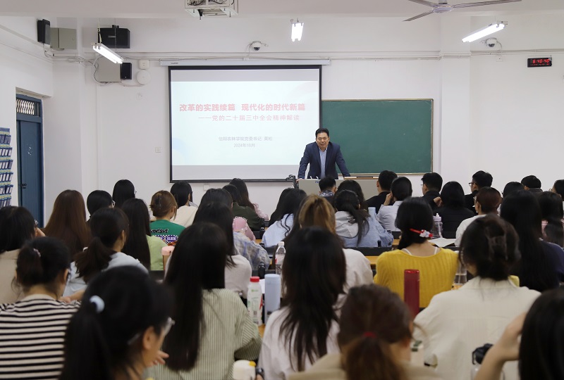 黄松从“深刻领悟党的二十届三中全会重大意义,准确把握新时代进一步全面深化改革的重点领域及遵循的六大原则”三个方面对党的二十届三中全会进行深入讲解,展开了一堂别开生面、启智润心的思政课。他指出,党的二十届三中全会是在以中国式现代化全面推进强国建设、民族复兴伟业的关键时期召开的一次十分重要会议,是全面深化改革的实践续篇、推进中国式现代化的时代新篇。