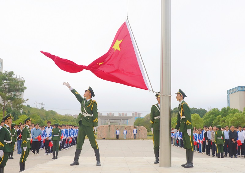 易军鹏作了总结讲话。他指出,在这个特殊的日子里,我们举行升旗仪式,既是为了庆祝新中国成立75周年,也是为了缅怀先烈,传承红色基因。在国庆到来之际,他向大家提出了三点希望:一是要坚定理想信念,胸怀报国之志。要树立远大理想,把个人的命运与国家的命运紧密联系在一起,胸怀报国之志,为实现中华民族伟大复兴的中国梦贡献自己的力量。二是要学好专业知识,练就过硬本领。要努力学习专业知识,提高综合素质,培养创新精神和实践能力,为将来走向社会、服务人民打下更好更坚实的基础。三是要勇于担当作为,投身强国伟业。要保持初生牛犊不怕虎、越是艰险越向前的刚健勇毅,勇立时代潮头,争做时代先锋,在担当中历练,在尽责中成长,努力在为中国式现代化挺膺担当中展现青春作为、彰显青春风采、贡献青春力量。(撰稿/校团委 阮晓晖 魏竞超 摄影/大学生记者团 唐学雯 孟文楚 荆振豫)