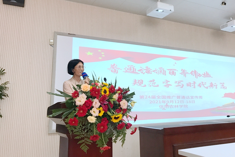 王万玲在讲话中指出,今年是中国共产党成立100周年,是我国“十四五”规划开局之年,也是学校接受本科教学工作合格评估的关键之年。开展好推广普通话宣传活动,是时代赋予我们的光荣使命,是每一位师生义不容辞的责任,对于展示学校良好形象、更好服务地方发展具有重要意义。希望广大师生牢记强国使命,不负百年初心,将“说普通话写规范字”融入日常学习、工作、生活中,用普通话和规范字讲好中国故事,讲好家乡的故事,传承红色基因,赓续中华文明,奋力书写彰显信阳农林风采的时代新篇。