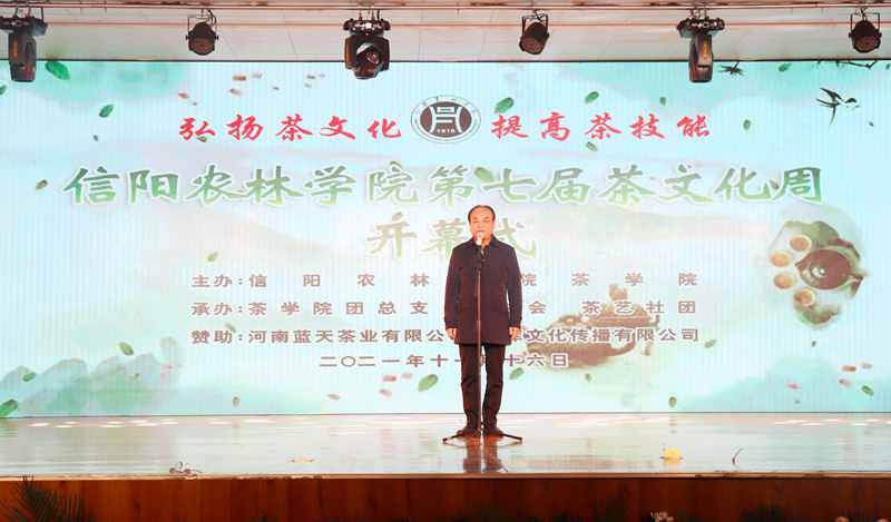 茶学院党总支书记、院长郭桂义致开幕辞,介绍了茶学院教学改革和成效、茶文化建设取得的成绩,鼓励师生持续开展中华优秀传统文化教育,坚持“育新人”与“兴文化”相结合。