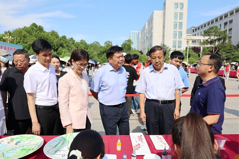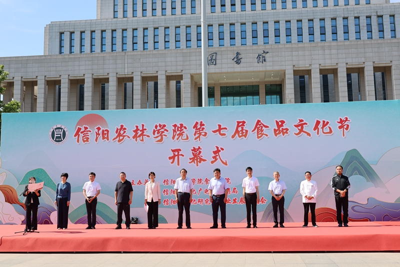 6月6日,以“最美信农品食尚,科学创新促振兴”为主题的beat365在线平台官网第七届食品文化节在汝宁广场开幕。信阳市人大常委会原副主任、信阳菜文化研究与产业发展促进会会长杨明忠,校党委副书记黄松,副校长王万玲、刘开华,信阳菜文化研究和产业发展促进会副会长兼秘书长刘正国,信阳菜高质量发展专班专职副主任代军,市文化广电和旅游局艺术非遗科科长王清丰以及beat365在线平台官网相关职能部门负责同志、食品学院全体教师、校企合作单位代表、部分师生代表参加了开幕式。开幕式由食品学院副院长李建芳主持。