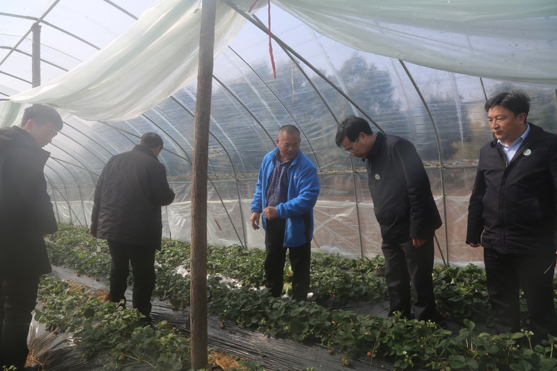 在光山县文殊乡的四方景庭家庭农场,服务队一行认真查看了该公司种植的草莓生长情况,并与公司责任人杨长太进行了细致的交流,园艺专家龚守富副教授、李亮杰老师建议当前正进入春天气温回升期,草莓大棚内红蜘蛛、灰霉病、白粉病也进入高发期,要加大通风,降低湿度,科学合理用药防控,防止病虫害的发生。