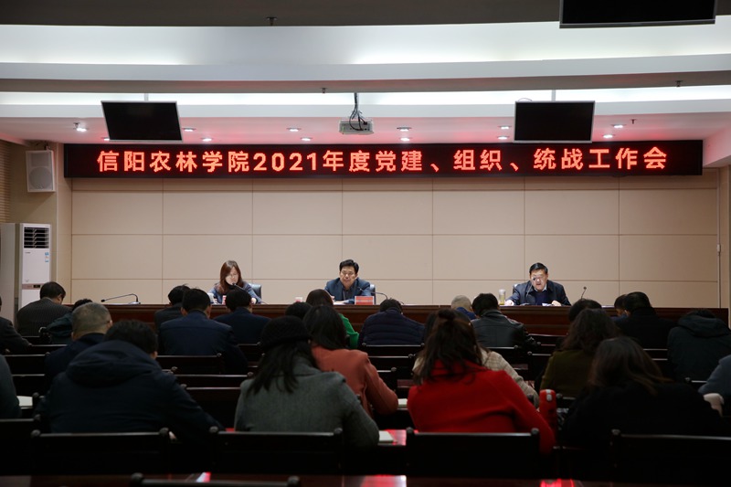 3月31日,beat365在线平台官网在综合楼一楼会议室召开2021年党建、组织、统战工作会议。党委副书记黄松,党委委员、组织部长陈廷国,党委委员、统战部长张婷,学校党建工作领导小组、统一战线领导小组和宗教工作领导小组成员单位负责人,各党总支书记、副书记、组织委员、统战委员参加会议。会议由陈廷国主持。