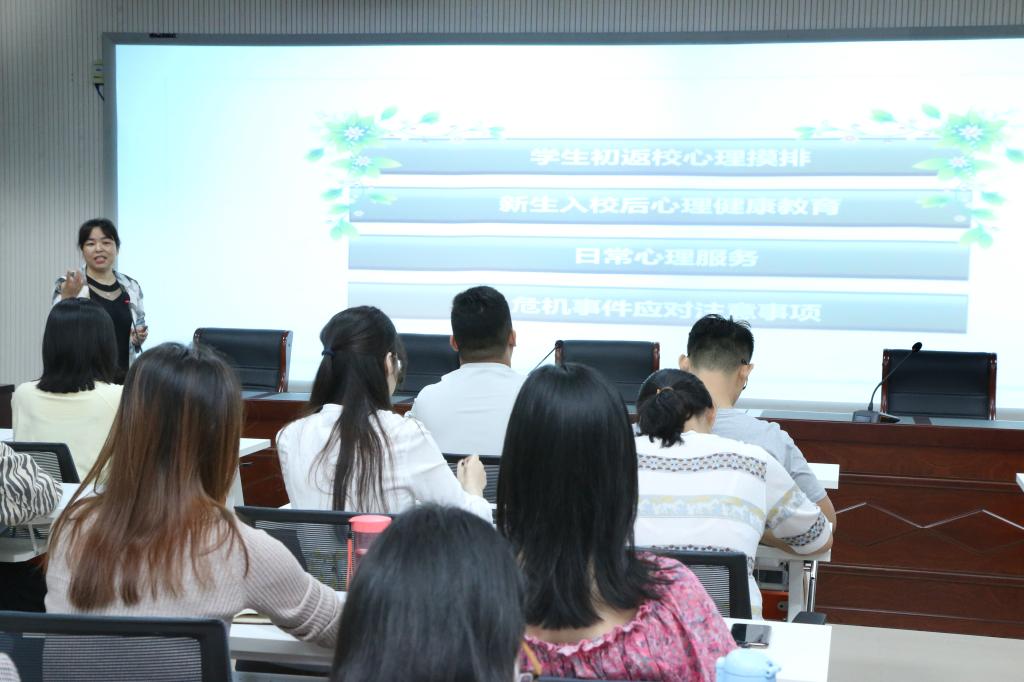 会上,心理健康中心尚会静老师与大家分享了学生返校后心理摸排与疏导方法、新生入校心理健康教育与引导、日常心理服务及危机事件应对注意事项等内容;在畅想环节,与会教师纷纷就工作中遇到的问题进行沟通交流。副校长王万玲指出育心育德、育心先行、培育学生自尊自信、理性平和、积极向上的健康心态是我们的职责与使命,更是落实人才培养目标的重要体现,强调了今后工作:一要抓紧教育教学主渠道,培养学生自助、互助、求助意识;二要占领实践教育主阵地,充分结合德育、体育、美育、劳动教育和农林特色,打造心理健康教育实践园地;三要充分挖掘“学校、学院、班级、宿舍、家庭”五纵、“专业教师、管理干部、服务人员、学生干部、学生社团”五横网格化格局的心理育人功能,促进学生心理健康素质与思想道德素质、科学文化素质协调发展。