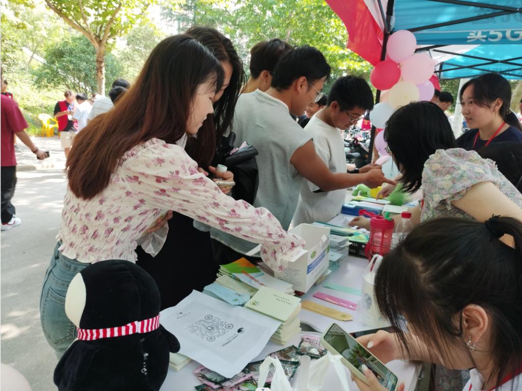 迎新宣传初了解。迎新期间,心理健康中心教师带领学生志愿者们向来往新生及家长宣传普及心理健康知识,讲解心理健康对个体发展的重要性和必要性,引导家长积极参与家校共助学生健康成长,并热心送上精美书签、解压玩具、扇子等宣传用品,鼓励新生遇到心理困扰及时求助