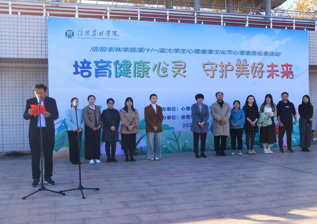 首先,体育学院院长李俊致开幕词,表示希望同学们积极参与以体强心、阳光心理活动,感受运动魅力,在体育锻炼中享受乐趣、增强体质、健全人格、锤炼意志,营造积极向上、健康温馨的校园文化氛围。接着,党委学工部部长、学生处处长、心理健康教育与咨询中心主任宣布第十一届大学生心理健康文化节之心理素质拓展活动正式开始。
