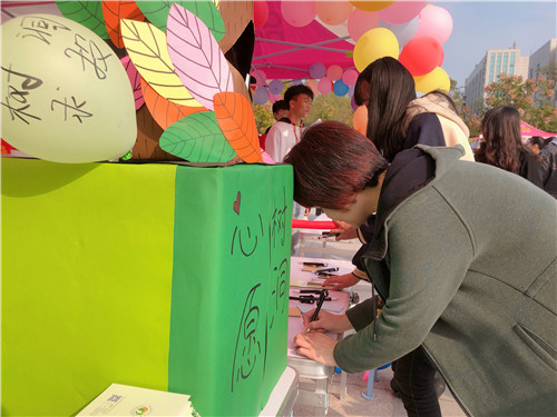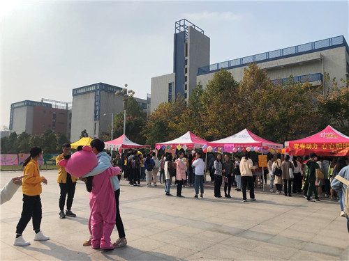 11月5日,心理健康中心在汝宁广场开展第七届心理健康文化节之“心灵长廊”活动,本次活动由心理健康中心主办,各学院承办,此次心灵长廊的设计独具匠心,以游园会的形式举办。