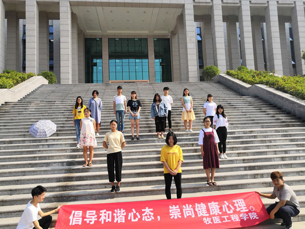 2018年6月5日上午,由牧医工程学院组织举办的大学生心理健康活动在汝宁广场举办,参加的人员有牧医工程学院学生会全体成员及17级各班同学。