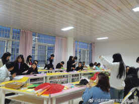 活动开始,由社团负责人给大家讲解准备材料,并进行示范,让同学们能更好的参与这个游戏。然后组织同学们共同进行游戏,分发材料。最后给同学们做的手工艺作品拍照留念。在游戏的过程中每个同学都玩的很认真和开心。